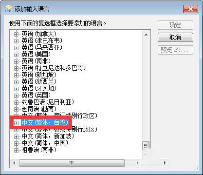 在設置界面中,我們選擇右側的“添加”進入添加界面,然后拉到最下方,找到中文繁體,臺灣或者其他地區進行添加。