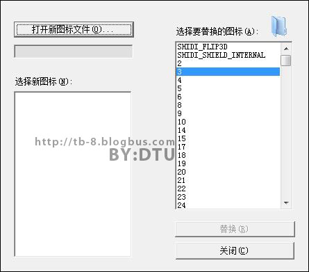 9. 彈出了個對話框(替換圖標與.........),讓你選擇你要替換的圖標(ico文件),點擊左上角的"打開新圖標文件(0)..."
