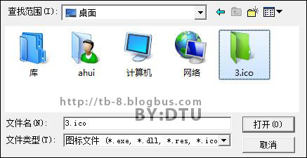 10. 你選擇圖標文件,找到你要替換的圖標文件后(ico)選中,點擊對話框右下角的 "打開(0)"