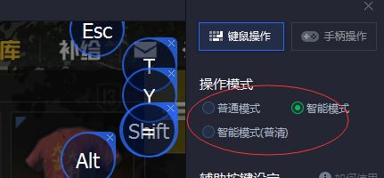進入鍵位更改模式之后,你可以右側的工具欄彈出一個鍵位設置工具窗口,這里面包含有三個系統自帶的鍵盤鍵位,“普通模式”“智能模式”以及“智能普清模式”。