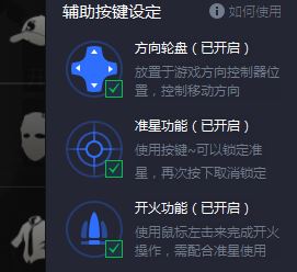 輔助按鍵設定,你可以通過勾選左側的這幾個輔助按鍵,然后將其添加至左側的游戲界面中,即可實現相應的游戲操作要求。