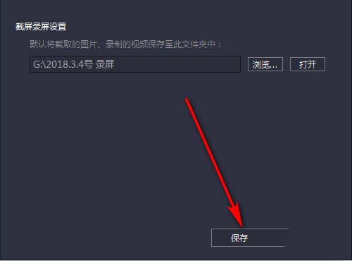 點擊確定后返回到截屏錄屏設(shè)置對話框,我們就可以看到瀏覽旁邊的位置更改了,最后點擊<保存>,截屏錄屏存儲的位置就更改成功了。