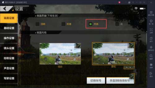 把畫質(zhì)設(shè)置為中高,如果設(shè)置不了,可能是因為剛才沒有選擇機型,這個時候再選擇一下機型重啟游戲就能選擇了。