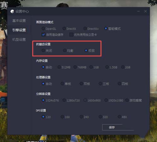 機器性能很好的話,抗鋸齒可以設(shè)置高點,畫面更加細膩。機器性能差就設(shè)置低點。可以先玩一局試試,如果卡頓,就設(shè)置低點。