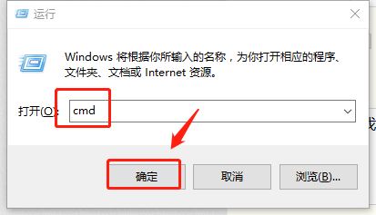 進入運行窗口,輸入cmd命令,然后點擊確認按鈕,如下圖所示