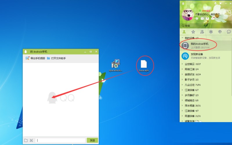 4、將桌面上APK文件,通過QQ傳到手機上便于我們直接安裝。