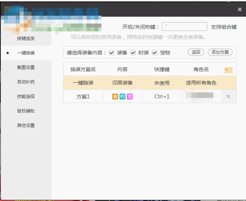 6、開啟一鍵換裝功能,并設(shè)置一個無其它程序占用的快捷鍵即可。