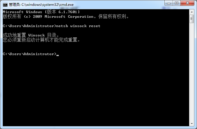 5、最后我們打開CMD輸入重置網絡命令,然后重啟電腦就可以正常使用wegame了,命令為:netsh winsock reset