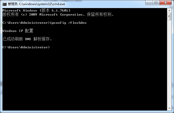 3、這個時候我們可以使用DOS命令符來進行DNS重置,打開DOS命令符然后輸入“ipconfig /flushdns”這句話,這樣會釋放我們的DNS,然后我們重新設置一個固定DNS即可解決問題。