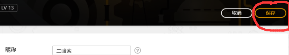 4、接下來,我們就進入了資料修改界面了,將我們的昵稱修改掉,在游戲內的名字隨之也會被更換掉哦(小編這里是把昵稱修改成了二哈索)