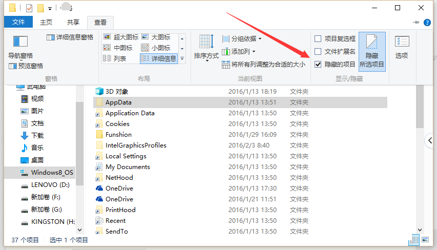 2,AppData這個文件默認是隱藏的,所以你需要在文件夾選項里點擊查看,勾選顯示 隱藏文件、文件夾,這樣就可以看到AppData了!