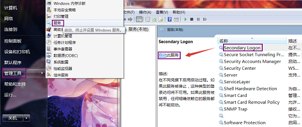 開啟Secondary Logon服務(wù):