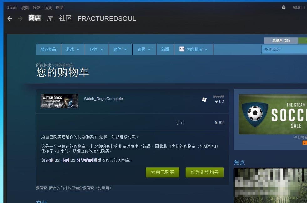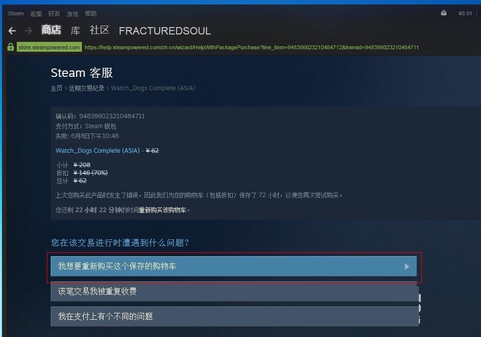 STEAM認(rèn)定付款失敗后,訂單保留72小時(shí)(包括優(yōu)惠)