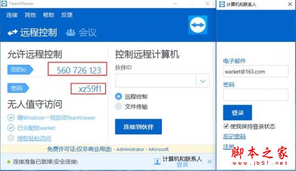 上面紅框部分就是軟件給你臨時分配的ID和密碼, 你可以直接在手機上輸入使用了。