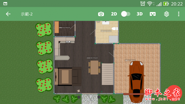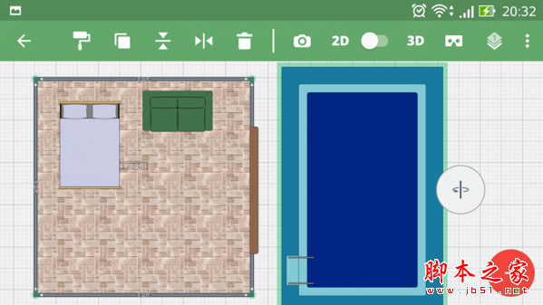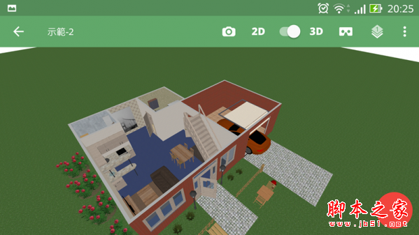 馬上從 2D 變身 3D 顯示,整間房子瞬間立體起來,可以清楚看到壁紙的花色。