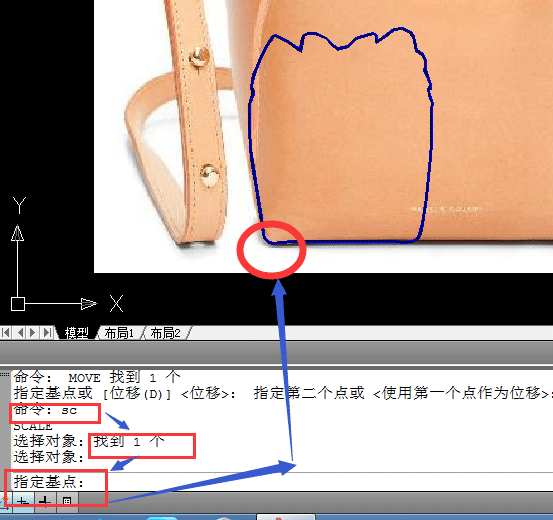 2、SC然后空格------》鼠標左鍵全部選取想縮放的圖------》指定縮放的“基點”