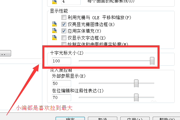 4、選擇調節十字光標的大小,根據個人喜好進行調節。