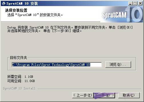 5、選擇SprutCAM v10安裝位置,默認的是“C:/Program Files/Sprut Technology/SprutCAM 10”,可以點【瀏覽】進行更改