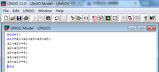 只需要按照圖中的格式去寫。可以看到,lingo的編程語言與我們所學到的運籌學公式基本一致。