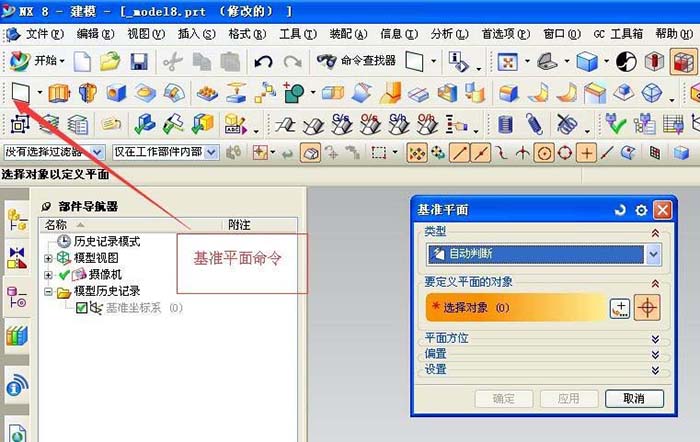 7、基準平面命令,通過創建基準平面,我們可以增加圖型的繪制基準,方便繪制不規則模型。