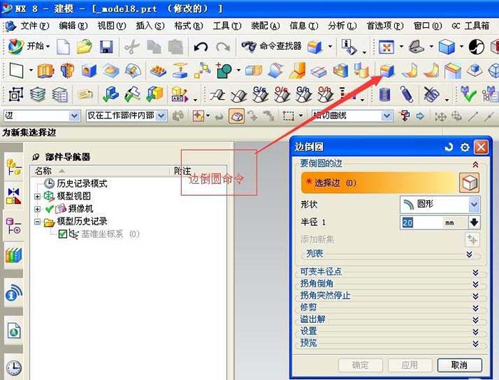 5、邊倒圓命令,一些工件的邊或開口需要倒圓角去毛刺,那么可以通過邊倒圓命令實現。