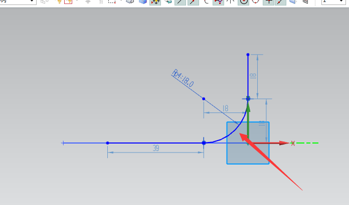 4、繪制如下圖的R角線,其半徑為18mm,(此線處需要運用制作拐角,以防止其會斷開)
