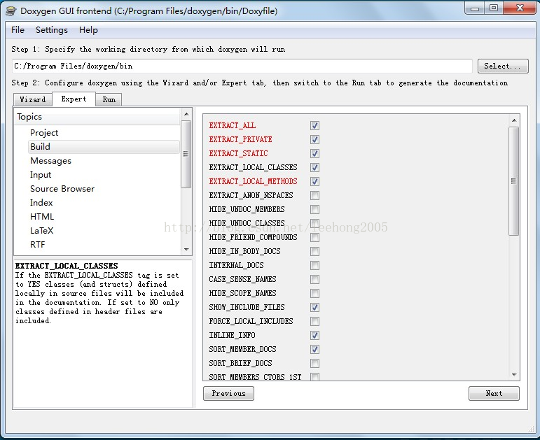 圖1,Doxygen配置主界面。