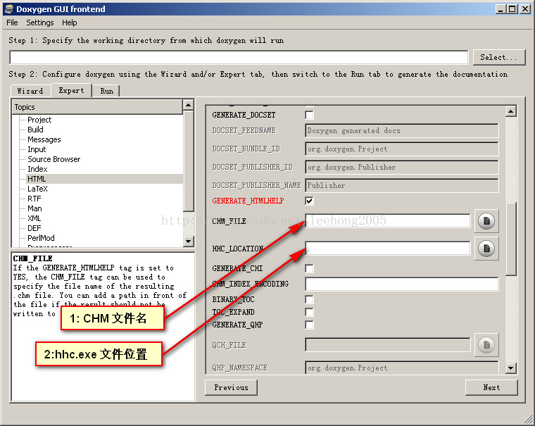 1,Doxygen工作目錄,就是用來存儲配置文件的目錄。