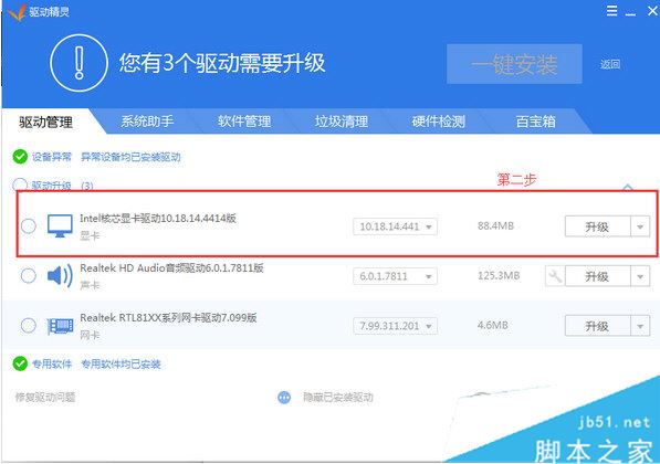 (2)使用“驅(qū)動(dòng)精靈”進(jìn)行升級(jí)(如下圖)