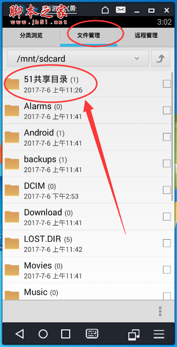 (1)導出的方法和導入的方法剛好相反,我們先把手機中想要導出的文件移動到“51共享目錄”中;
