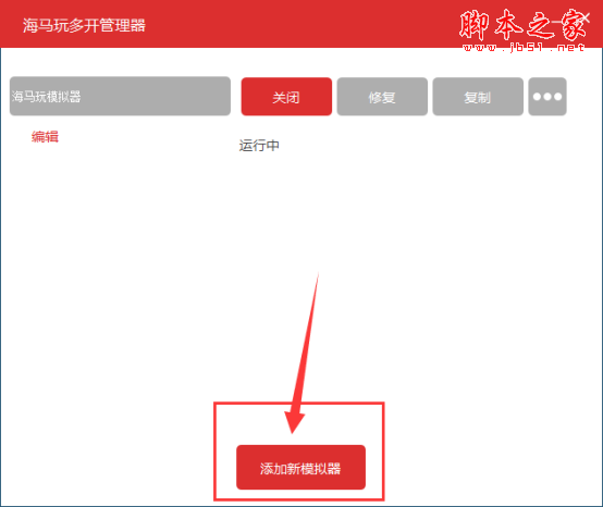 1、首先我們打開海馬玩模擬器,接著再打開海馬玩多開管理器,然后在海馬玩多開管理器的底部點擊“添加新模擬器”,添加第二個模擬器;