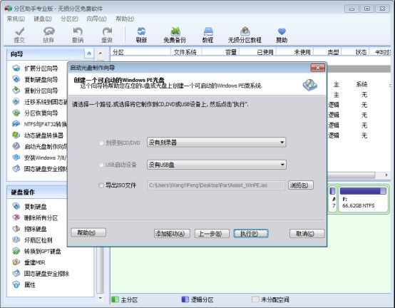 啟動光盤制作向導。該向導目的在于創建一個可啟動Windows PE媒介:光盤,U盤或導出ISO文件。當你不能正常進入Windows系統時,可以通過這個winpe媒介啟動和修復錯誤。