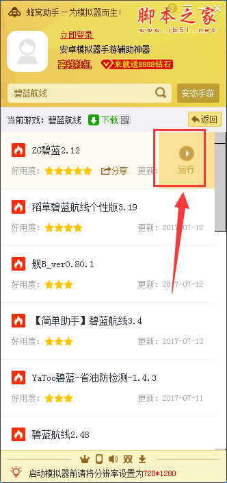 1、打開電腦中的模擬器并運行想要開啟輔助的游戲,然后再打開蜂窩助手軟件,在其界面頂部點擊“立即登錄”按鈕并登錄我們的賬號;
