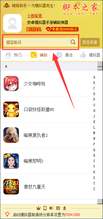 2、登錄完畢后在蜂窩助手界面的搜索框中直接搜索想要開啟輔助的游戲,如下圖所示:
