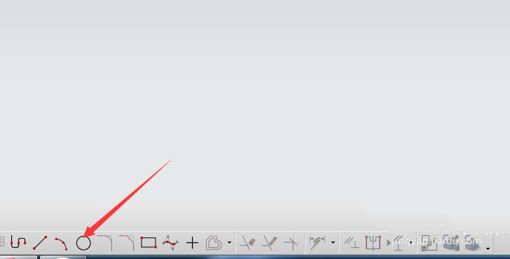 3、進入繪圖界面后,底部是草繪命令,如下箭頭所示,選中圓命令后會出現(xiàn)繪圖基準面。