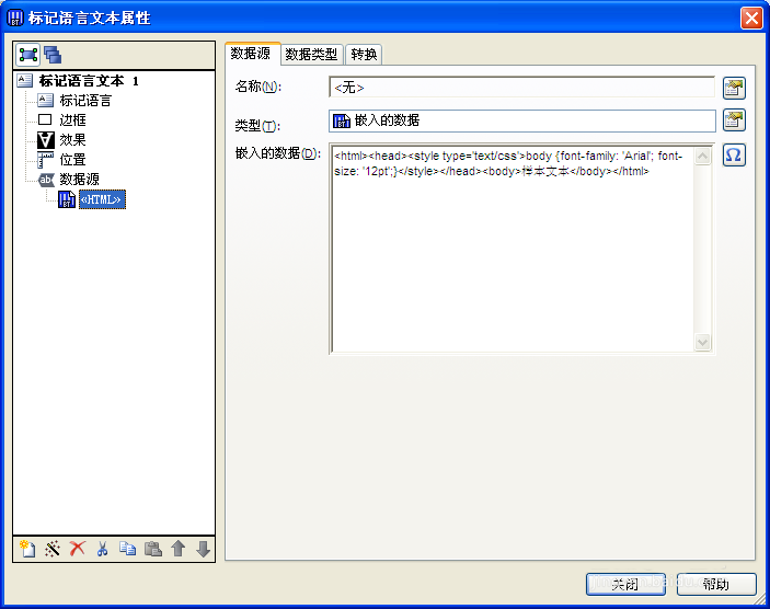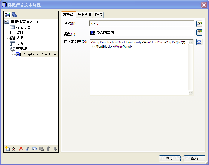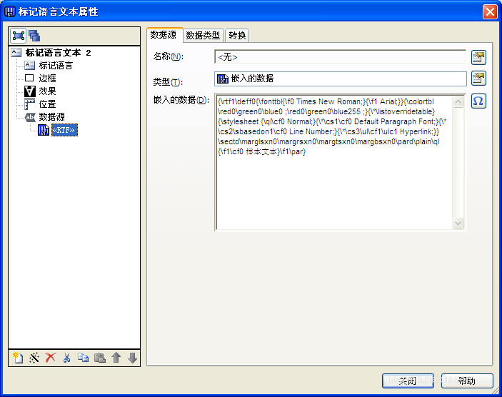 標記語言為使用標記或代碼定義文本的布局或格式的語言。在BarTender中使用標記語言允許您在數據庫中包含文本格式或使用VB 腳本動態設置文本對象內容的格式。從上圖可以看出BarTender支持3種標記語言:富文本格式 (RTF)、超文本標記語言 (HTML) 和可擴展應用標記語言 (XAML)。