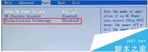 2)通過← →方向鍵選擇【Power】選項,然后通過↑ ↓方向鍵選擇【Virtual Technology】并按下回車。