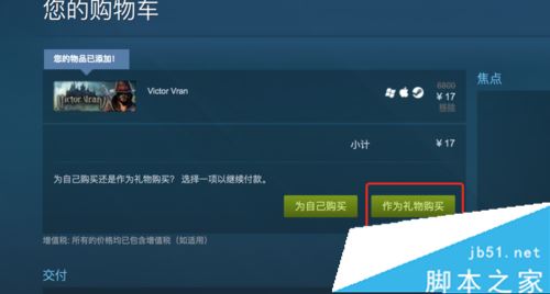在購物車頁面你會看到"為自己購買"、"作為禮物購買"的選項。因為要送給別人,所以點擊"作為禮物購買" 的按鈕。