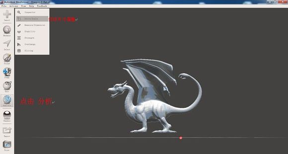 加載需要編輯的3D模型,此處我們加載Dragon-Z-flat.stl,需要注意的是meshmixer只能加載.obj .ply .stl .amf文件。