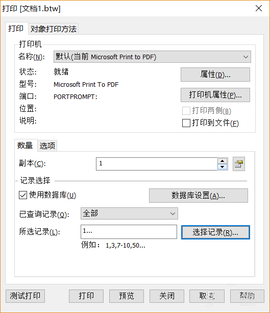 6、然后在打印對話框中,選擇需要打印的記錄,到這應該知道怎么操作了吧。