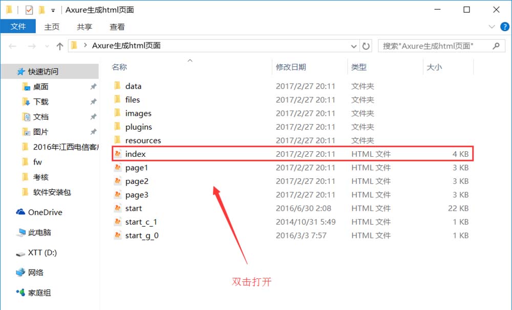 5、打開上面的文件夾,雙擊打開“index”文件