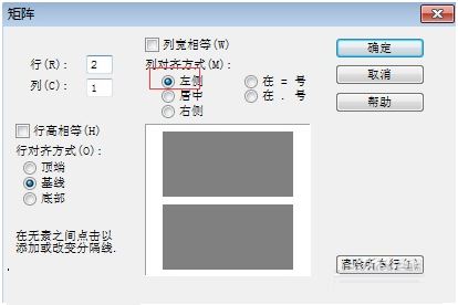 5、在彈出的矩陣對話框中,在“列對齊”方式下選擇“左側(cè)”,然后點(diǎn)擊確定按鈕。