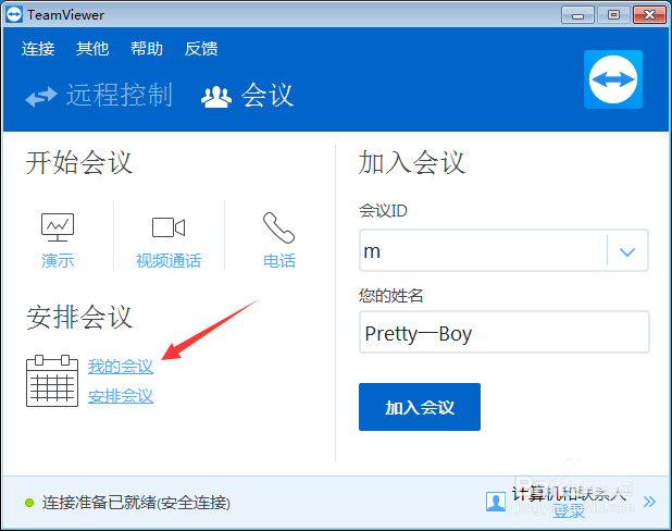 2、如果我們想自己用teamviewer創(chuàng)建會議的話在左側可以點擊我的會議。