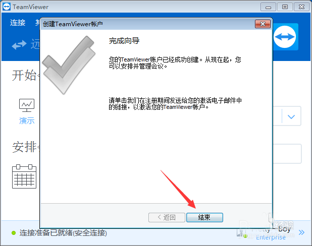 5、teamviewer帳號創(chuàng)建成功以后點擊結束就可以了。