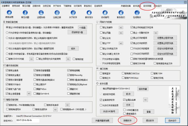 在軟件界面勾選要控制的項目,立即生效。各項設置完成后,點“后臺運行”,每次開機后,軟件會自動隱藏、自動運行。如果點了“退出軟件”,則控制失效,快捷鍵也無法喚出軟件,可以通過重啟電腦恢復控制。