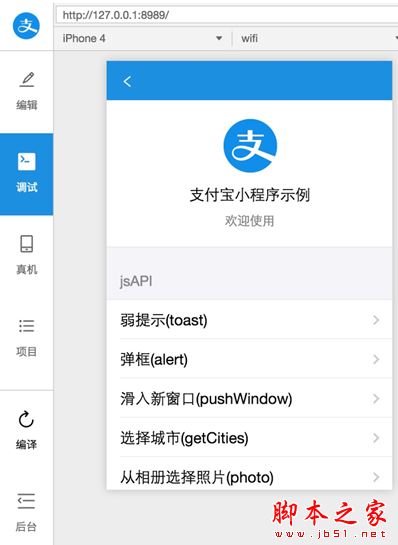 支付寶小程序開發者工具頁面截圖