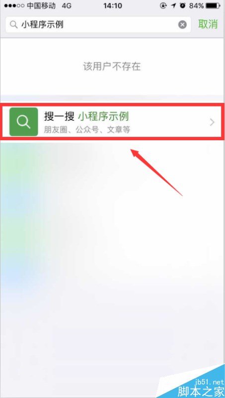 然后輸入關鍵字“小程序示例”,然后點擊搜索框下面的“搜一搜 小程序示例”