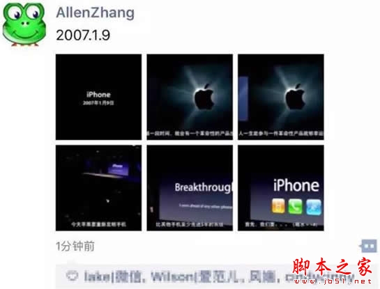 “小程序”上線后,張小龍在微信朋友圈發(fā)了幾張圖致敬蘋果公司。2007年1月9日,喬布斯發(fā)布了第一代iPhone,此后世界進入移動互聯(lián)網時代。