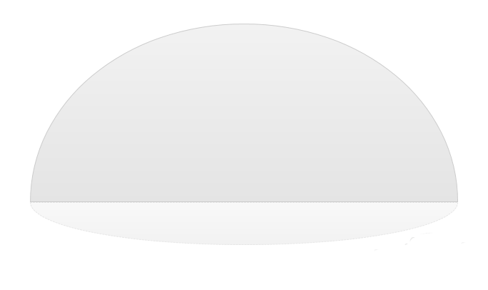 3、再在半圓形下方拖一個半圓形,寬度跟上方的一致,但是高度比上方的小,如下圖所示: