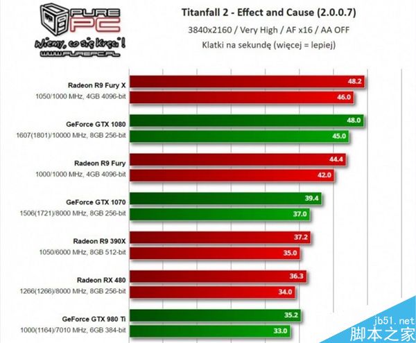 上月,波蘭Pure PC做過《泰坦隕落2》的顯卡測試,結(jié)果GTX 1080被Fury X吊打,難道是因?yàn)閷?shí)在搞不定,NV直接放棄優(yōu)化了?